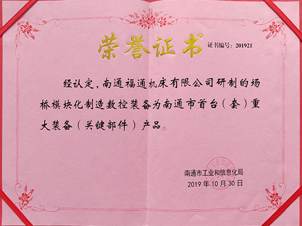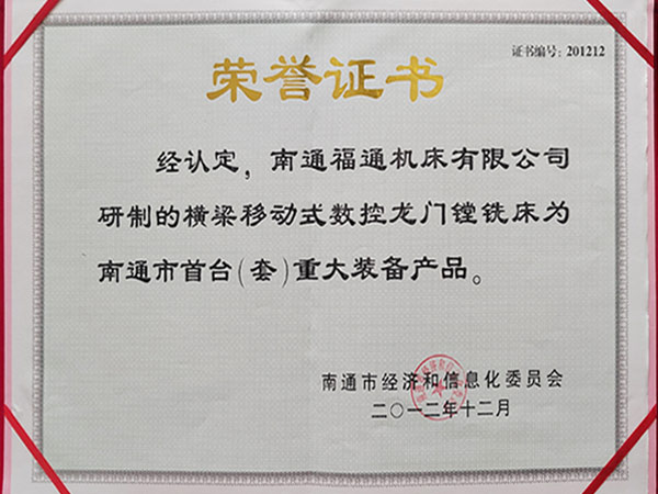 公司通過ISO9001:2015質(zhì)量體管理系認證、ISO14001:2015環(huán)境管理體系認證、ISO45001:2018職業(yè)健康安全管理體系認證、先后榮獲:中國機床行業(yè)十佳品牌、江蘇名牌產(chǎn)品、江蘇省質(zhì)量信得過企業(yè)、南通市科學(xué)技術(shù)進步獎、南通市AAA級重合作守信用企業(yè)、高新技術(shù)企業(yè)、南通市首臺(套)重大裝備產(chǎn)品等榮譽。